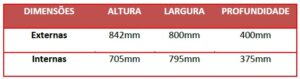 Confeccionado em chapa de aço #26 (0,45mm) para tampo superior, base, prateleiras, portas, laterais e retaguardas, normalizada laminada a frio com SAE 1008.