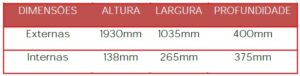 Portas: confeccionadas em chapa de aço #26 (0,45mm) nas medidas 135mm(A) x 292mm(L) x 15mm(E) com furação para ventilação na parte superior direita de cada porta com 15 furos circulares com 6mm de diâmetro em formação triangular com espaçamento de 15mm entre os furos, sem dobradiças, com articulação pivotante mediante PINO ARRUELADO SUP FASTFIXX com encaixe em furação na parte superior da porta travando na parte inferior da prateleira acima e PINO INFERIOR FASTFIXX para encaixe na parte inferior da porta a uma Bucha de nylon fixada a prateleira base, com um estampo na parte interna inferior da porta formando uma aba dobrável para travamento do pino, Fechamento através pitão (dispositivo para cadeado injetado em nylon com 33% fibra de vidro na cor preta) ou fechadura tipo yale.