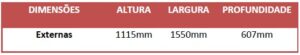 Laterais: Confeccionadas em MDP BP (25mm) (Partículas de Média Densidade) medindo: 1103mm(A) x 607mm(L) fabricado através de partículas de madeira com resinas sintéticas (Ureia Formol), revestido por ambas as faces por uma folha celulósica decorativa banhada em solução melamínica fixada através de um processo de prensa de baixa pressão com acabamento em fita em PVC (polietileno)com 2mm espessura com bordas aparentes encabeçadas na mesma cor do tampo. Fixados através de castanha girofix 15mm e pinos M6 rosca soberba.