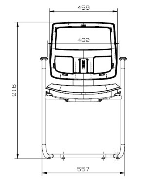 O apoio de braço fixado à estrutura é fabricado pelo processo de injeção em termoplástico de engenharia (Copolímero de Polipropileno) e possui dimensões