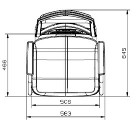 O conjunto é revestido com tecido pelo processo de tapeçamento convencional. Suas dimensões são aproximadamente 500 mm de largura e 450 mm de profundidade, apresentando em suas extremidades cantos arredondados. O assento ainda possui uma blindagem plástica fabricada pelo processo de injeção em termoplástico de engenharia (Copolímero de Polipropileno).