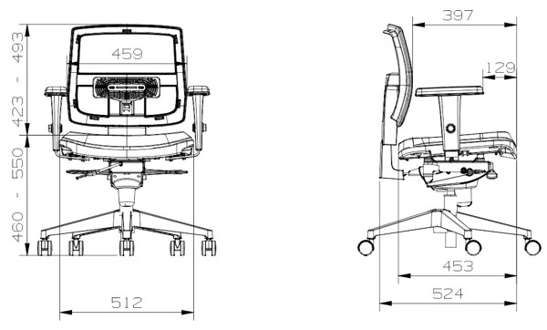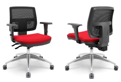Possui duas alavancas localizadas no lado direito, uma que trava e destrava o movimento de reclinação do encosto, e a outra que comanda o acionamento da coluna a gás, para regulagem de altura da cadeira.