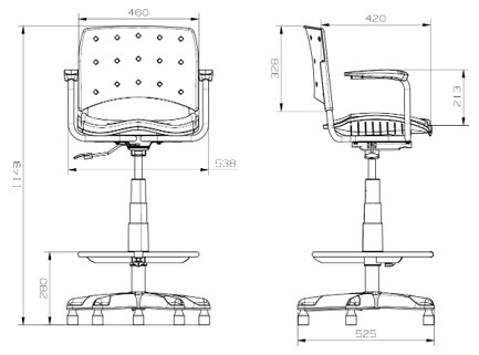 Componente utilizado para manter a estabilidade da cadeira em todas as suas funcionalidades, principalmente nivelamento sobre o piso, oferecido no modelo abaixo: