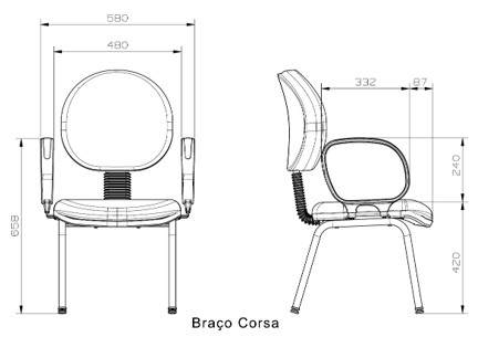 Braço Corsa: Consiste em uma estrutura plástica em arco, injetado em termoplástico de engenharia (Copolímero de Polipropileno), com duas flanges de aço em formato de “L” para a fixação no assento. Para montar o braço no assento, são utilizados 4 (quatro) parafusos sextavados (para cada braço) com as dimensões aproximadas de ¼” x 1.¼”.
