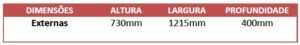 Retaguarda: 2 unidades confeccionadas em MDF (9mm) (Fibras de Média Densidade) fabricado através de fibras de madeira com resinas sintéticas (Ureia Formol), com pintura em ambos os lados, medindo 9mm(E) x 1190mm(A) x 337mm(L).
