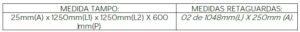 Tampo: Confeccionado em MDP BP (25mm) (Partículas de Média Densidade) fabricado através de partículas de madeira com resinas sintéticas (Ureia Formol), revestido por ambas as faces por uma folha celulósica decorativa banhada em solução melamínica fixada através de um processo de prensa de baixa pressão com acabamento em fita em PVC (poliestireno) com 2mm espessura com bordas aparentes.
