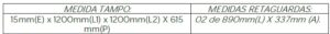 Retaguarda: Confeccionado em MDP BP (15mm) (Partículas de Média Densidade) fabricado através de partículas de madeira com resinas sintéticas (Ureia Formol), revestido por ambas as faces por uma folha celulósica decorativa banhada em solução melamínica fixada através de um processo de prensa de baixa pressão nas medidas abaixo: