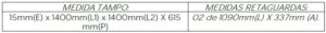 Retaguarda: Confeccionado em MDP BP (15mm) (Partículas de Média Densidade) fabricado através de partículas de madeira com resinas sintéticas (Ureia Formol), revestido por ambas as faces por uma folha celulósica decorativa banhada em solução melamínica fixada através de um processo de prensa de baixa pressão nas medidas abaixo: