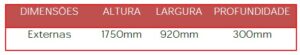 Colunas: 08 colunas bipartidas com fixação através de encaixe, confeccionadas em chapa de aço #24 (0,60 mm), sendo 4 unidades inferior com 900mm de altura e 4 superiores com 900mm de altura, dobra perfilada em de 35×35 mm com conformação na parte central e bordas conformadas e rebatidas com 35 furos circulares para regulagem de altura possibilitando o travamento mais eficaz das prateleiras, (formato patenteado).