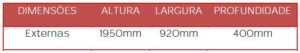 Colunas: 08 colunas bipartidas com fixação através de encaixe, confeccionadas em chapa de aço #24 (0,60 mm), sendo 4 unidades inferior com 1000mm de altura e 4 superiores com 1000mm de altura, dobra perfilada em “L” de 35×35 mm com conformação na parte central e bordas conformadas e rebatidas com 35 furos circulares para regulagem de altura possibilitando o travamento mais eficaz das prateleiras, (formato patenteado).