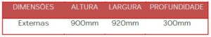 Prateleiras: em chapa de aço # 26 (0,45mm) na medida de 30mm(A)x920mm(L)x 300mm(P), com dobras duplas e rebatidas nas laterais (4 dobras perpendiculares sendo a 1ª 12mm rebatida, a 2ª a 30mm com 90°, a 3ª a 400mm com 90°, a 4ª a 30mm com 90° e termina com 12mm) e triplas nas partes frontais e posteriores (6 dobras perpendiculares sendo a 1ª dobra a 10mm com 90°, a 2ª a 10mm com 90°, a 3ª a 30mm com 90° a 4ª a 300mm com 90°, a 5ª a 30mm com 90°, a 6ª a 10mm com 90° e termina com 10mm).