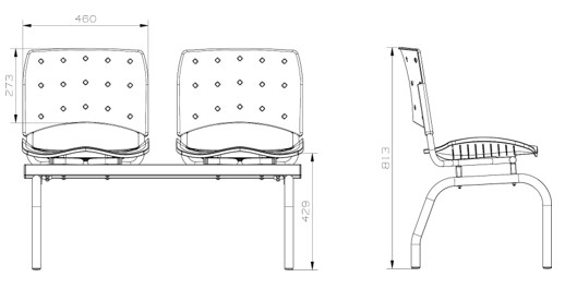 Estrutura denominada de travessa desenvolvida em tubo industrial de construção mecânica na configuração retangular de aço carbono ABNT 1008/1020 com as dimensões de 60×40 mm e espessura de 1,2 mm, nas suas extremidades, possuem 2 (duas) luvas conificadas de 30×60 mm e espessura de 1,9 mm para que se unam ao apoio vertical. Possuem 2 (dois) suportes para cada assento produzidos em chapas de aço carbono ABNT 1008/1020 nervurados pelo processo de estampagem na espessura de 4,75 mm e soldado na estrutura pelo processo de soldagem (MIG). Possui ainda 2 (dois) calços de 5 mm, injetados em termoplástico de engenharia (Copolímero de Polipropileno) para cada suporte. Para montagem são utilizados 4 (quatro) parafusos sextavados com as medidas de ¼” x 1.½” para cada assento.