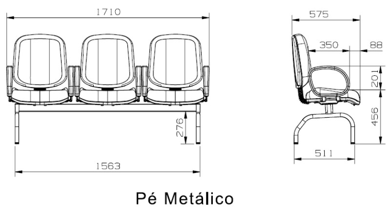 Os pés se unem à travessa por meio de encaixe cônico fabricado em tubo de secção oblonga 29×58 com parede de 1,9 mm, conformado por estampagem e soldado às travessas e pés pelo processo de soldagem (MIG). A quantidade de pés varia de acordo com o número de assentos. Longarinas de 2 e 3 lugares possuem 2 (dois) pés e longarinas de 4 e 5 lugares possuem 3 (três) pés.