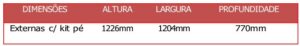Tampo: Confeccionado em MDP BP (25mm) (Partículas de Média Densidade) fabricado através de partículas de madeira com resinas sintéticas (Ureia Formol), revestido por ambas as faces por uma folha celulósica decorativa banhada em solução melamínica fixada através de um processo de prensa de baixa pressão medindo 1204mm(L)x770mm(P)x25mm(E).