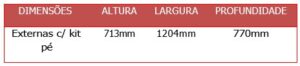 confeccionada em chapa mista de aço # 22 (0,75mm) e # 24 (0,60), medindo 707mm(A)x1204mm(L)x770mm(P).