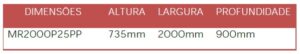 MESA MR2000P25 PP: Mesa com tampo de 25mm com sua medida total de 735mm(A) x 2000mm(L) x 900mm(P), com acabamento em fita em PVC (Poliestireno) com 2mm espessura com bordas aparentes encabeçadas.