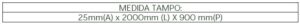 Tampo: Confeccionado em MDP BP (25mm) (Partículas de Média Densidade) fabricado através de partículas de madeira com resinas sintéticas (Ureia Formol), revestido por ambas as faces por uma folha celulósica decorativa banhada em solução melamínica fixada através de um processo de prensa de baixa pressão com acabamento em fita em PVC (poliestireno) com 2mm espessura com bordas aparentes.