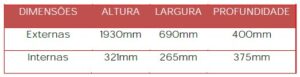Portas: confeccionadas em chapa de aço # 26 (0,45mm) nas medidas 319mm(A) x292mm(L)x15mm(E) com reforço na vertical tipo Ômega, com Furação para ventilação na parte superior direita de cada porta com 15 furos circulares com 6mm de diâmetro em formação triangular com espaçamento de 15mm entre os furos, sem dobradiças, com articulação pivotante mediante PINO ARRUELADO SUP FASTFIXX com encaixe em furação na parte superior da porta travando na parte inferior da prateleira acima e PINO INFERIOR FASTFIXX para encaixe na parte inferior da porta a uma Bucha de nylon fixada a prateleira base, com um estampo na parte interna inferior da porta formando uma aba dobrável para travamento do pino.