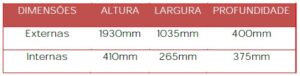 Portas: confeccionadas em chapa de aço # 26 (0,45mm) nas medidas 408mm(A) x292mm(L)x15mm(E) com reforço na vertical tipo Ômega, com Furação para ventilação na parte superior direita de cada porta com 15 furos circulares com 6mm de diâmetro em formação triangular com espaçamento de 15mm entre os furos, sem dobradiças, com articulação pivotante mediante PINO ARRUELADO SUP FASTFIXX com encaixe em furação na parte superior da porta travando na parte inferior da prateleira acima e PINO INFERIOR FASTFIXX para encaixe na parte inferior da porta a uma Bucha de nylon fixada a prateleira base, com um estampo na parte interna inferior da porta formando uma aba dobrável para travamento do pino.