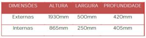 Portas: confeccionadas em chapa de aço # 26 (0,45mm) nas medidas 860 m(A) x 450mm(L) x 15mm(E) com reforço na vertical tipo Ômega, com Furação para ventilação na parte superior direita de cada porta com 15 furos circulares com 6mm de diâmetro em formação triangular com espaçamento de 15mm entre os furos, sem dobradiças, com articulação pivotante mediante PINO ARRUELADO SUP FASTFIXX com encaixe em furação na parte superior da porta travando na parte inferior da prateleira acima e PINO INFERIOR FASTFIXX para encaixe na parte inferior da porta a uma Bucha de nylon fixada a prateleira base, com um estampo na parte interna inferior da porta formando uma aba dobrável para travamento do pino.