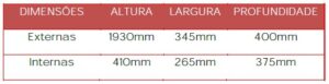 Base: confeccionadas em chapa de aço # 24 (0,60mm) nas medidas 40mm(E)X340mm(L)X392mm(P) com 3 dobras na visão frontal sendo a 1ª a 27mm com 90°, a 2ª a 40mm com 90°, a 3ª a 392mm com 90° e termina com 27mm, com sistema de unhas de gato para travamento nas laterais e fundos, sendo, 3 garras de fundo e 1 lateral direita e 1 lateral esquerda, com 4 estampos em baixo relevo em formato circular destinado ao encaixe e fixação dos pés.