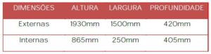Laterais: confeccionadas em chapa de aço # 26 (0,45mm) nas medidas de 1850mm(A) x 420mm(P) com 15 travas de cada lado tipo garras para fixação das prateleiras, lateral esquerda com 4 dobras sendo a 1ª a 14mm com 90°, a 2ª a 14mm com 90°, a 3ª a 25mm com 90°, 4ª a 420mm com 178° em curva e lateral direita com 3 dobras sendo 1ª a 10mm com 45°, a 2ª a 25mm com 90° a 3ª a 420mm com 178° em curva.